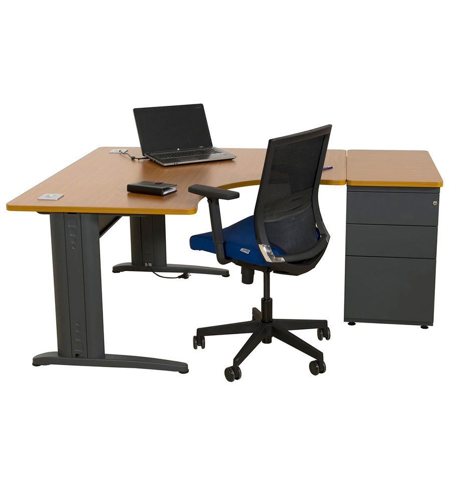 Nous vous proposons en option un caisson à hauteur de bureau, équipé de 3 tiroirs, 2 plats et 1 pour dossier suspendu.
