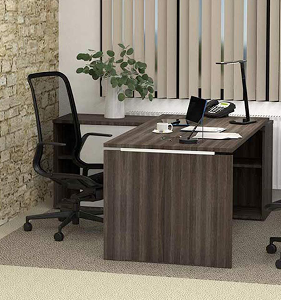 Découvrez notre bureau avec retour premium. Avec son plateau reposant sur un meuble portant, notre bureau fait preuve d’une très grande élégance.