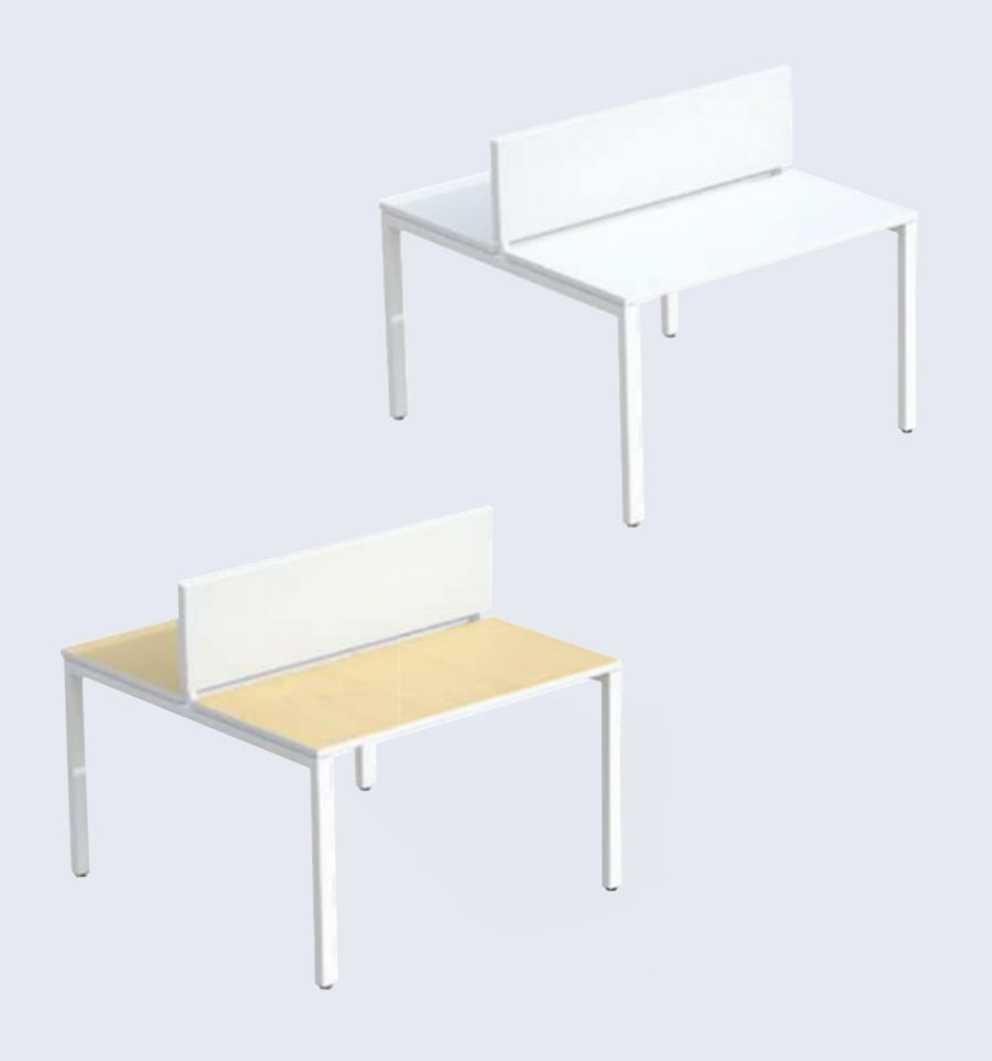 Composé de 2 plateaux mélaminés (25 mm d’épaisseur) et de pieds en acier epoxy blanc, notre bench 2 personnes est un bureau solide et sobre, pouvant ainsi se fondre dans tout style de décor de bureau.