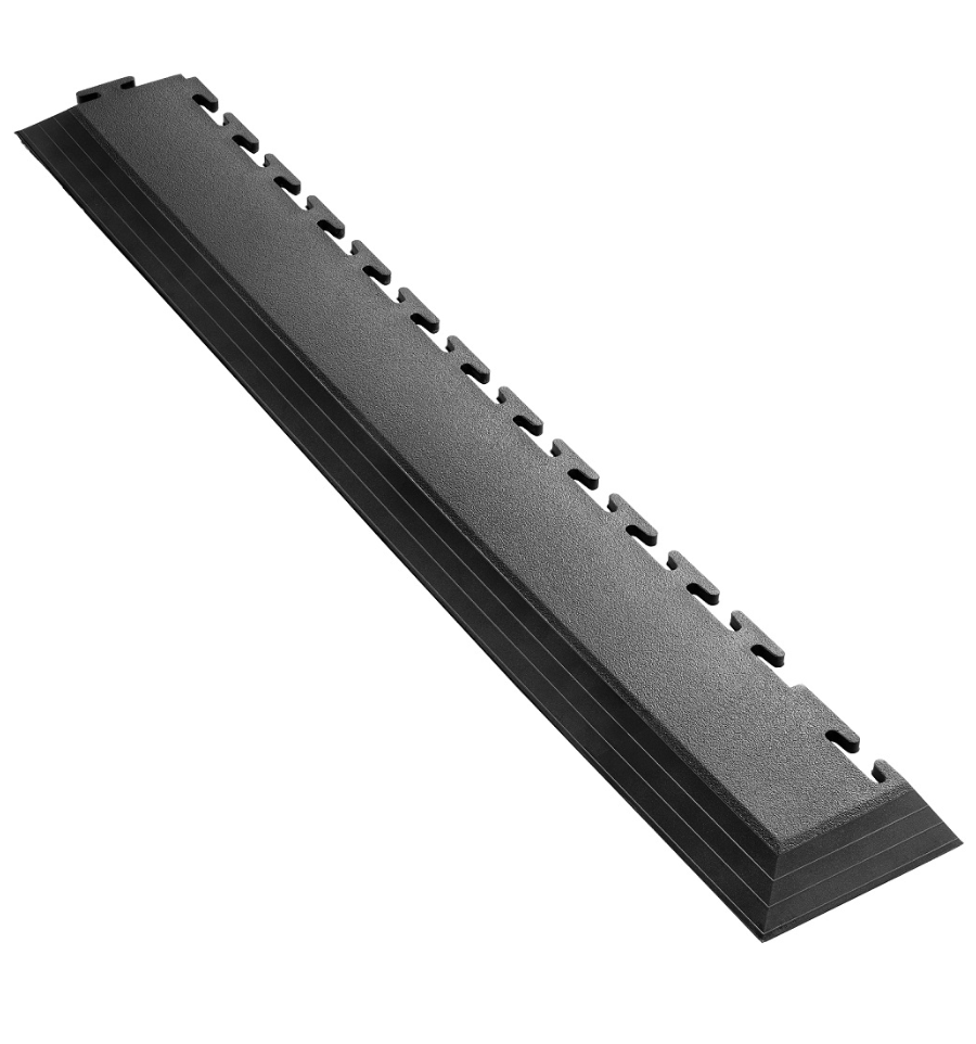 Nos bordures pour dalle permettent de finir proprement votre revêtement de sol de garage, en ne laissant aucun clip de fixation visible. Celles-ci sont légèrement inclinées, comme une rampe, afin de rattraper le niveau du sol et facilité le passage de chariot ou autre.