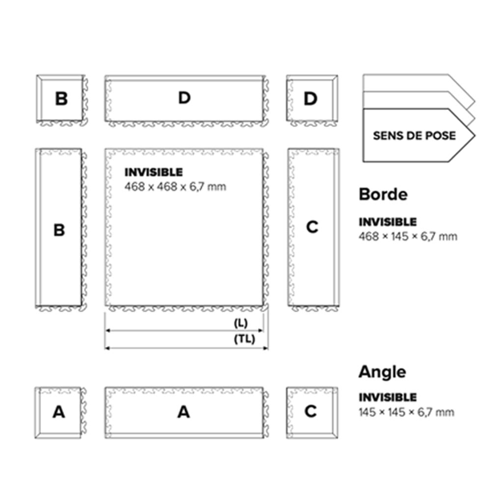 Pour les dalles PVC garage XL ou charges lourdes, notre fiche de bordures et angles correspondantes.