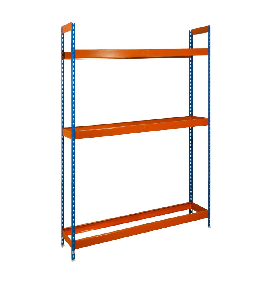 Il a une hauteur de 2000 mm, une profondeur de 450 mm et est disponible en plusieurs largeurs : 1200, 1500 ou 1800 mm. Vous avez aussi le choix pour les couleurs : soit peint en bleu et orange, soit en galvanisé.