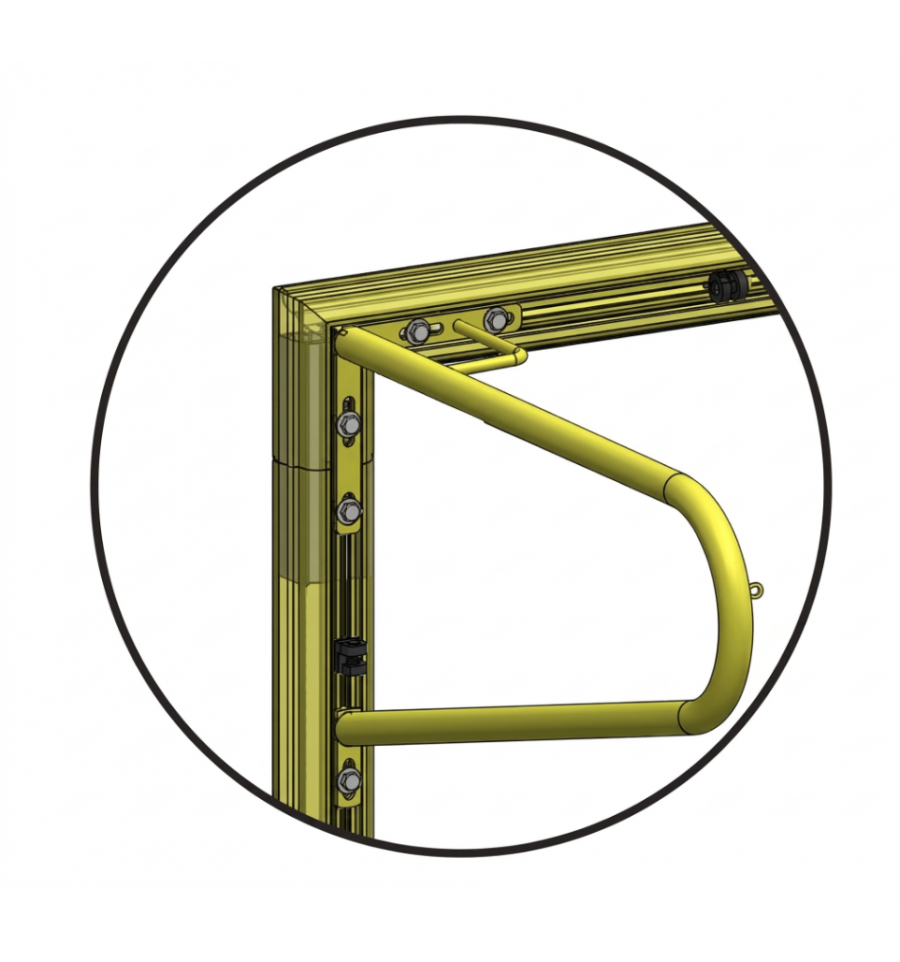 Livré complet : avec kit d'ancrage et barres de renfort arrière. Ces éléments en acier galvanisé de Ø34 mm, assurent une tenue au sol et une résistance aux impacts.