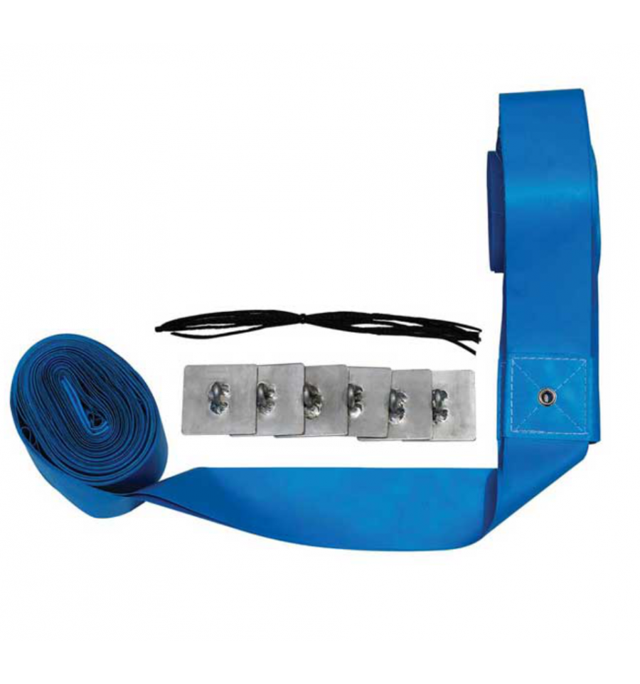 Bande PVC bleu, longueur 100mm. Livrée avec 6 ancrages à enfouir dans le sable pour une stabilité accrue.