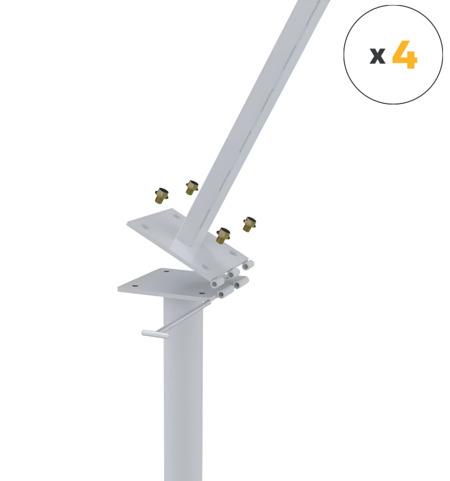 Il suffit donc ensuite de placer 4 vis sur la platine du dessus afin de maintenir les poteaux droits. Pour faire basculer les poteaux de rugby, il faut retirer les vis ainsi que la tige présente sur la platine.