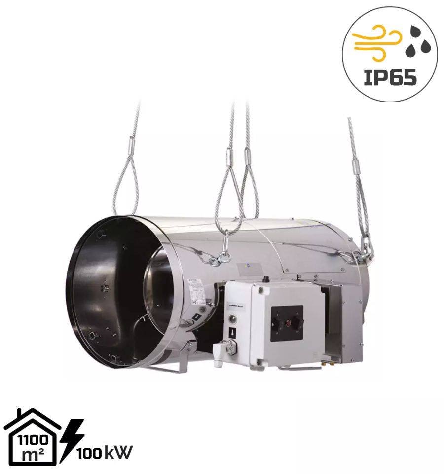 Ce générateur suspendu est parfait pour les salles d'élevage. Il est aussi performant pour chauffer une serre, un local industriel, un atelier ou un entrepôt.