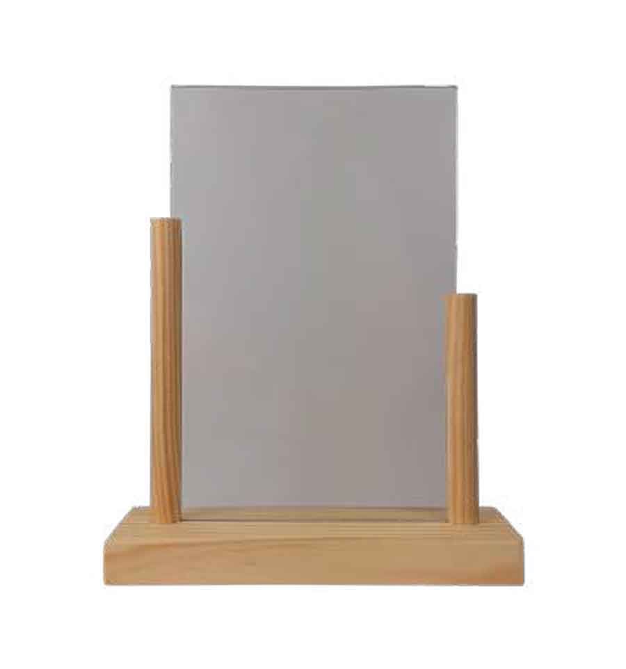 Ce porte-menu pour table bois brut avec protection en plexiglas est fabriqué en France. Il est disponible en format A4 de dimensions visibles 297 x 210 mm.