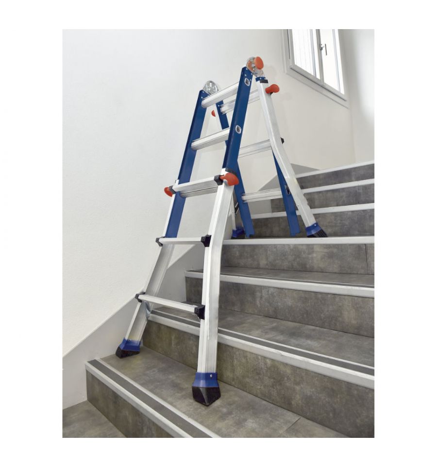 ADAPTABLE : Notre équipement se décline en deux hauteurs différentes (3 et 4 barreaux), et se transforme en 3 positions : autostable, dénivelé ou simple. Cette diversification permet à l'échelle télescopique de répondre à toute sorte de besoins, et de s'adapter à toute sorte de travaux en hauteur.