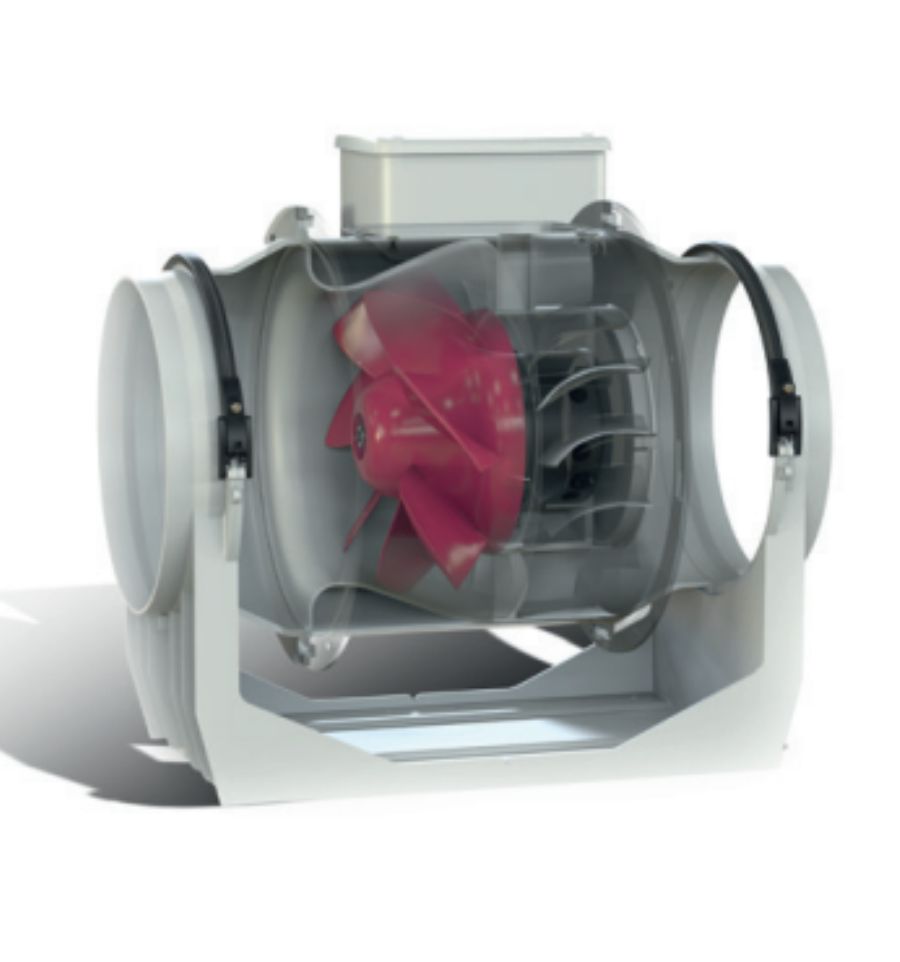 L'installation de cet extracteur d'air se fait avec des gaines. Sa force centrifuge lui permet d'être totalement adapté à une longue distance de gaine (>5 m).