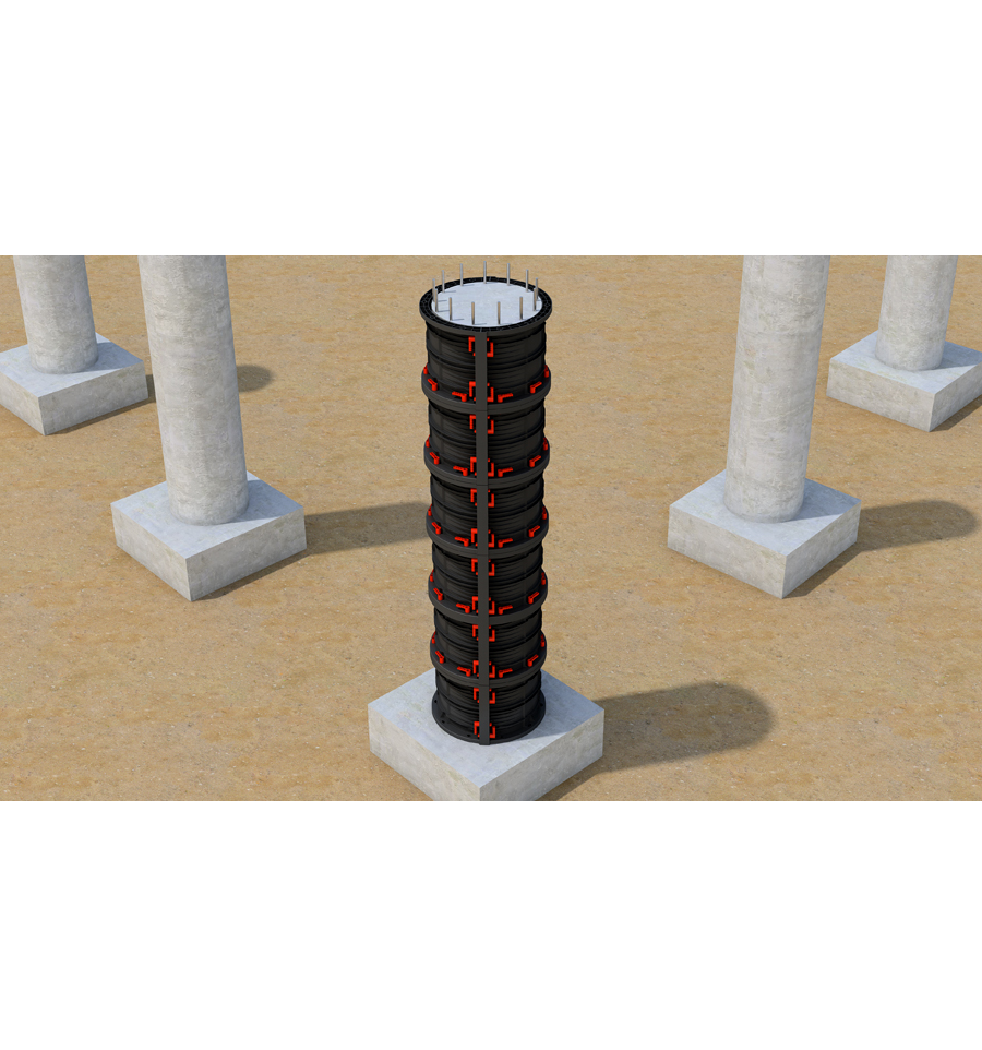 Sa structure circulaire permet de maintenir le béton en place jusqu'à son durcissement, en assurant une finition lisse et uniforme sur toute la surface du poteau.