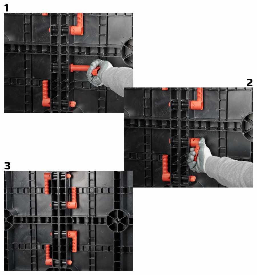 La poignée Geoplast permet à la fois de manipuler, de fixer et de verrouiller les équipements Geoplast.