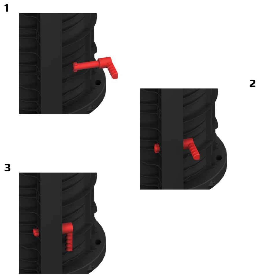 Sa mise en place et son utilisation sont simples : il vous suffit de placer la poignée dans la zone dédiée sur votre Geopanel ou Geotub, puis d'effectuer une rotation à 90° pour la verrouiller. Les étapes sont également disponibles dans les visuels en haut de page.