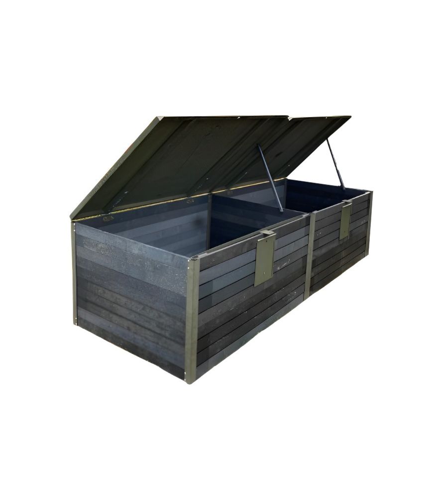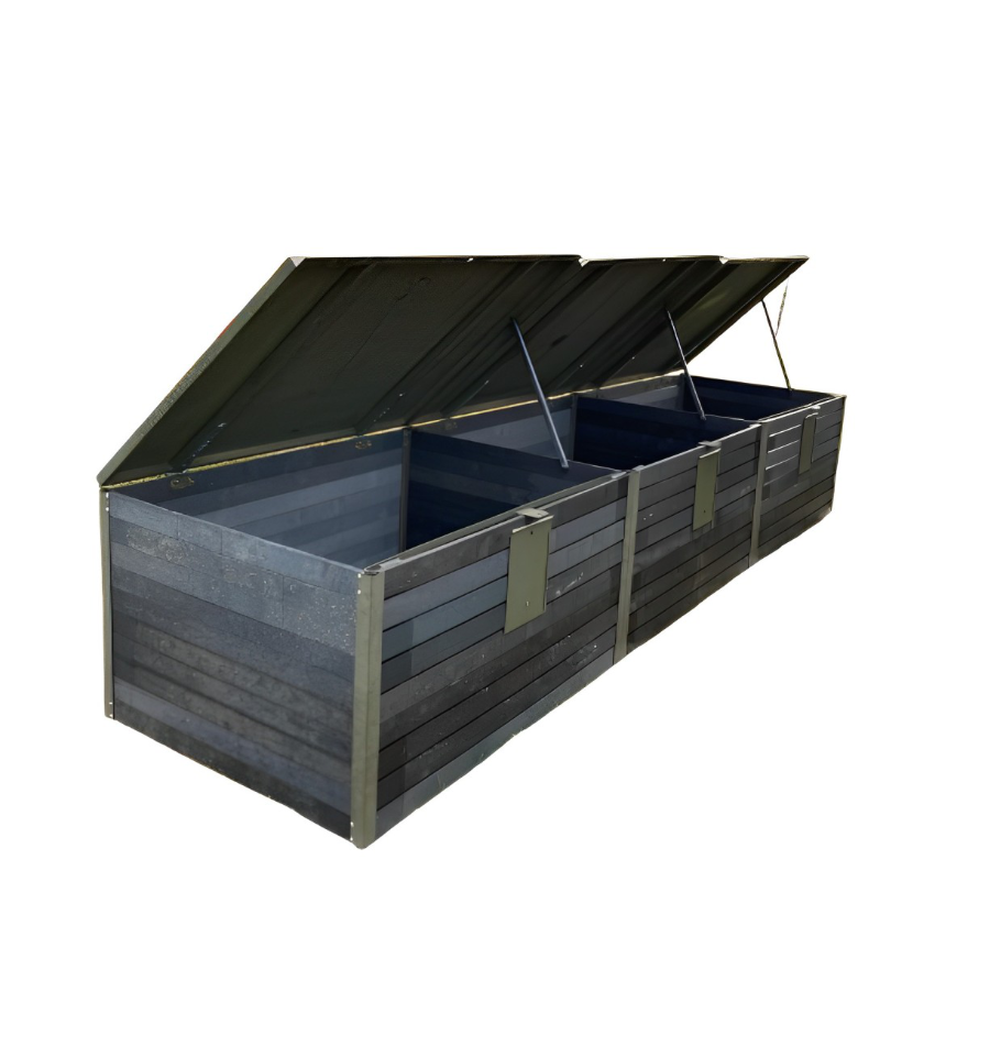 Ce composteur collectif possède 3 compartiments modulables en fonction de vos besoins. Un module vous permettra de composter les déchets organiques. Si vous optez pour deux modules, un vous permettra de stocker les matières sèches et l'autre d'y déposer vos déchets. Enfin, si vous optez pour le composteur à 3 modules, le module central stock les matières sèches et les deux autres permettent, chacun leur tour, la maturation du compost.