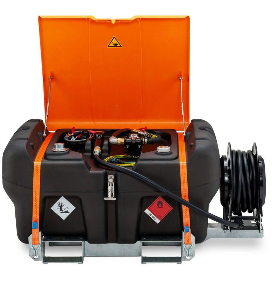 Cette cuve essence mobile homologuée ADR en PEHD simple paroi a une capacité de stockage de 330 L et distribue le carburant grâce à une pompe auto-amorçante intégrée de 12 volts au débit de 25 l/min.