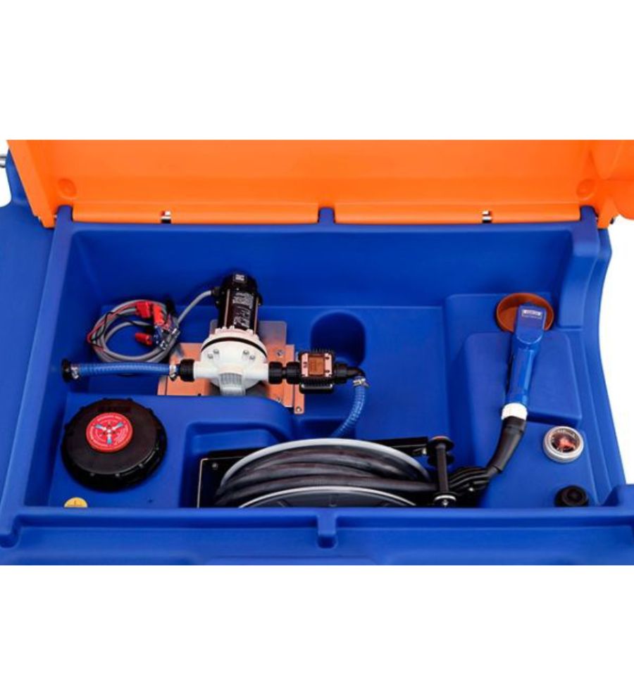 La cuve est accompagnée d'une pompe de transfert de 12 ou 230 volts selon votre choix, un pistolet de distribution automatique et un capot de protection avec vérin à gaz. Elle a aussi d'autres caractéristiques :