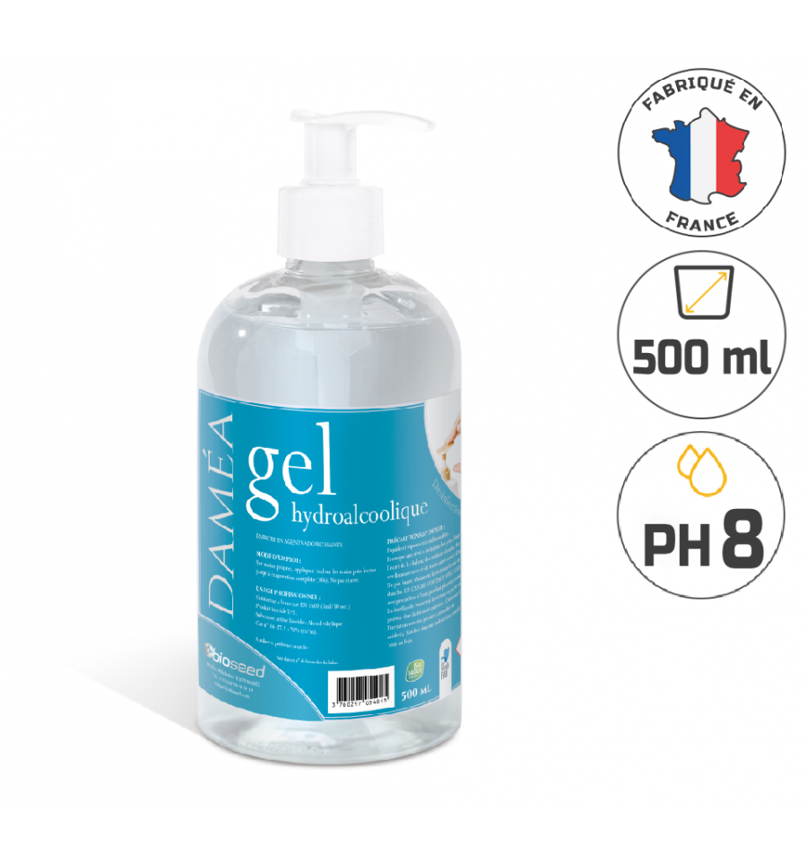 Fabriqué en France, le gel hydroalcoolique 500 ml avec pompe en lot de 6 est adapté à plusieurs domaines d'application, tels que les milieux médicaux, les crèches, les cuisines...