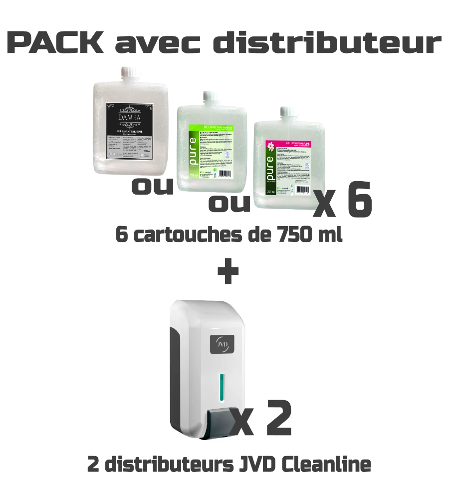 - Acheter un pack comprenant 6 recharges pour distributeur et 2 distributeurs JVD Cleanline