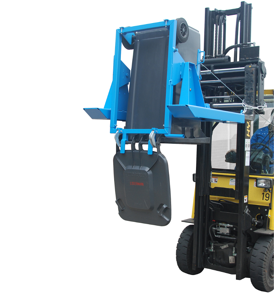 Le basculeur de conteneur est pratique et efficace pour vider les poubelles normées DIN-EN 840 en toute simplicité. Ce basculeur est compatible avec un chariot élévateur, il possède un système de vidage simple qui s'adapte aux besoins des professionnels.