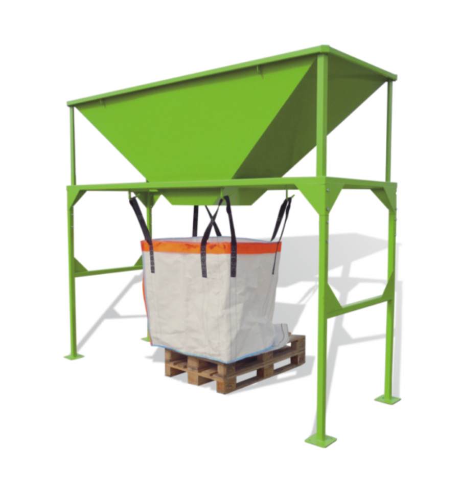 La structure de la trémie remplissage big bag est renforcée par un empiétement tubulaire avec des goussets de renfort pour une stabilité optimale. Pour éviter le basculement de la trémie de remplissage, nous vous conseillons de la fixer au sol grâce aux platines pré-percées fournies avec la trémie.