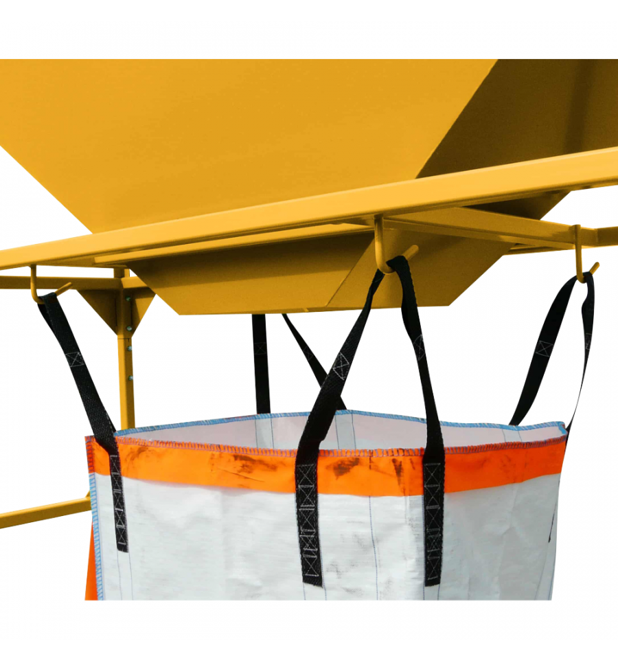 La trémie de stockage comporte quatre crochets conçus pour simplifier le décrochage des big bag afin de faciliter le remplacement des sacs.