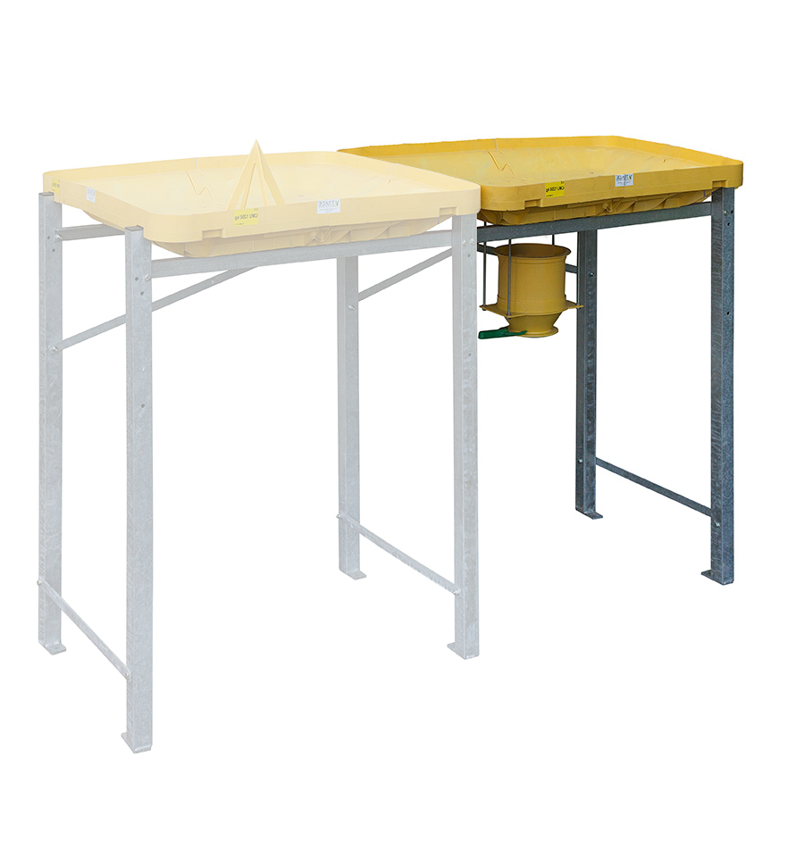 Le support vidange big bag est totalement modulable, vous pouvez partir d’une unité principale et y ajouter autant d’unités secondaires que nécessaire, qui seront reprises sur deux pieds du module central.