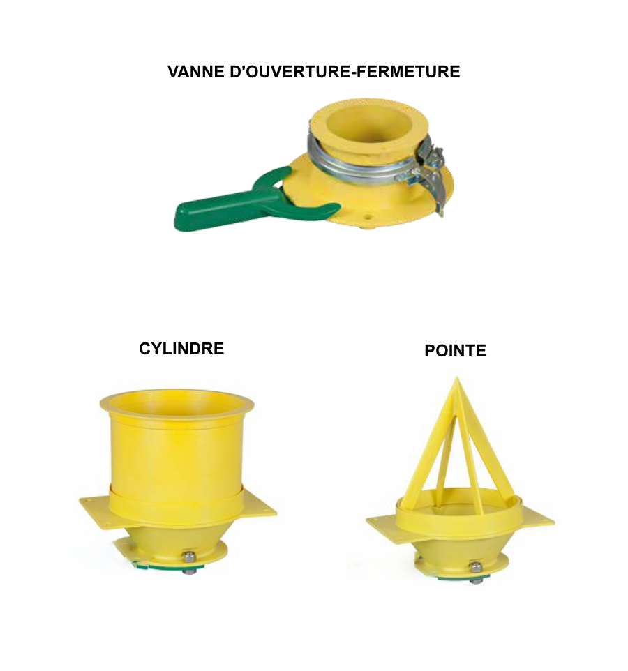- Une vanne d’ouverture-fermeture adaptable aux deux types de big bag