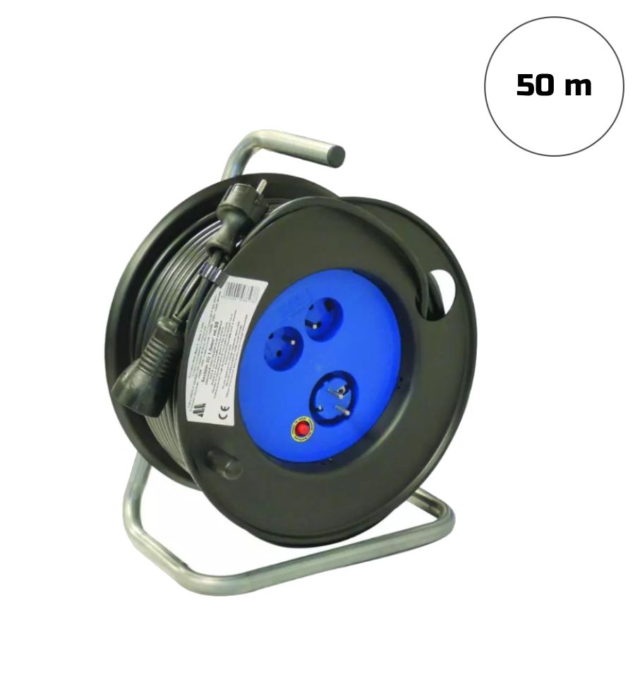 Découvrez l'enrouleur professionnel 50 m faisant également fonction de rallonge pour vos activités en intérieur et en extérieur.