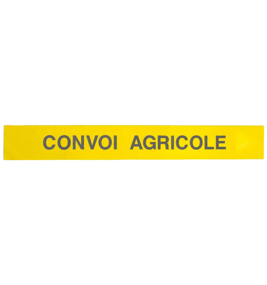 Le panneau "CONVOI AGRICOLE" doit être installé à l'avant et à l'arrière du tracteur afin de signaler sa présence et garantir la sécurité sur la route. Cependant, lorsque l'utilisation de ce panneau n'est pas adaptée à un tracteur spécifique, une bâche portant la mention "CONVOI AGRICOLE" peut être utilisée comme alternative.