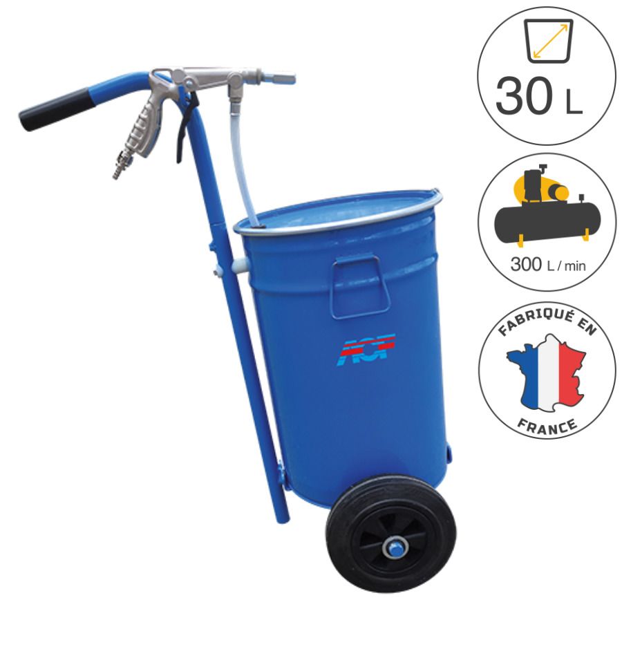 - un compresseur d’air professionnel d’au moins 3 CV avec un débit d’air restitué de 300 L/min, comme le compresseur mobile de chantier