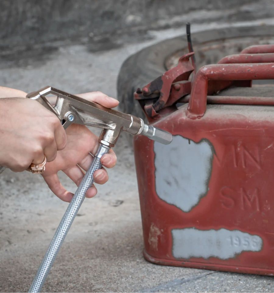 - Enfin, appuyer sur la gâchette du pistolet de sablage pour projeter l’abrasif et ainsi décaper votre surface.