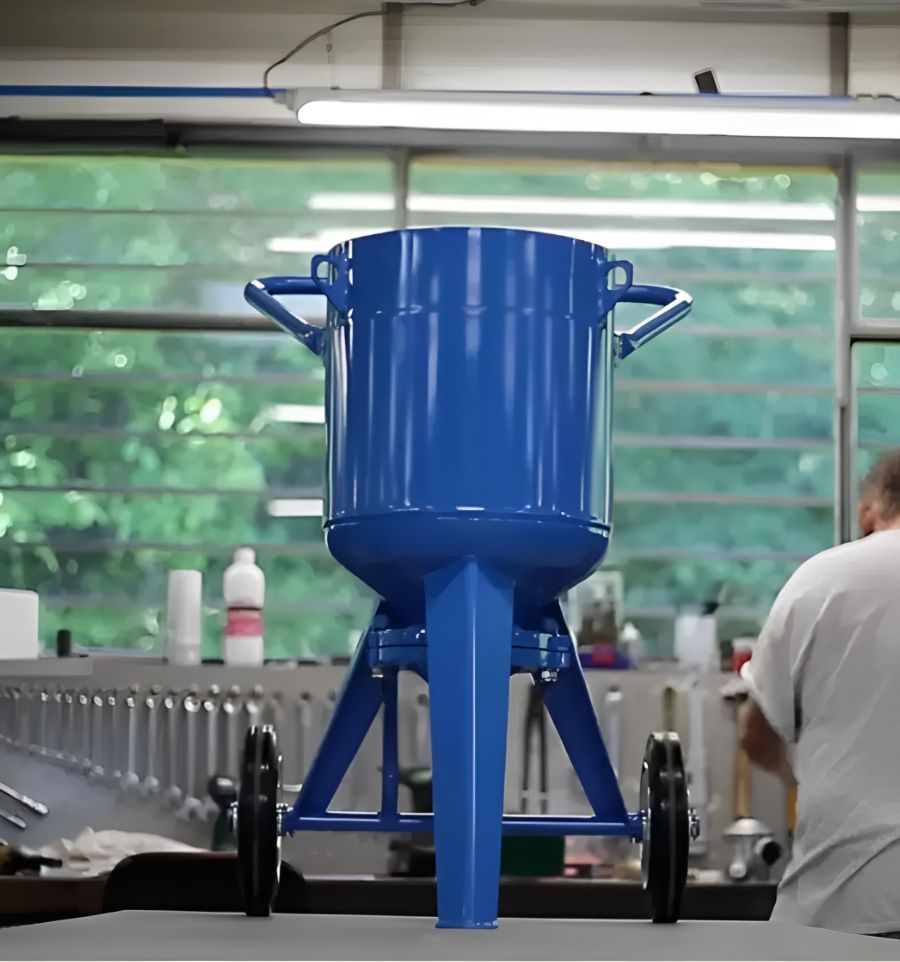 La sableuse est équipée de deux larges roues permettant de faciliter son transport et son déplacement sur vos chantiers. Elle dispose également d'un brancard qui protège ses organes de fonctionnement et qui permet de la coucher sans risquer de l’abimer. Nos sableuses sont équipées d’une trappe de vidange à fermeture automatique, une vanne de réglage d’abrasif, une soupape de sécurité et un épurateur primaire.
