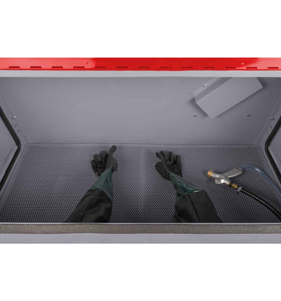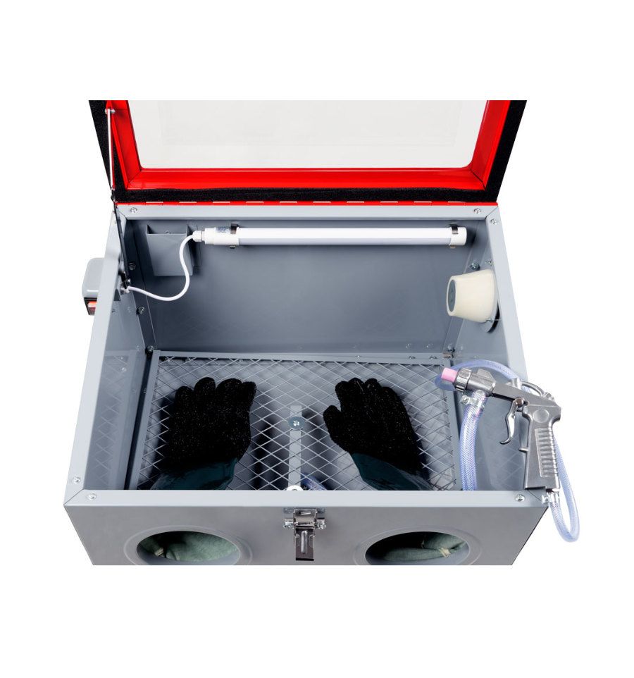 - La cabine de sablage 90L est la plus compacte de la gamme. Grâce à son poids et ses dimensions, elle est adaptée à une installation sur un établi par exemple.