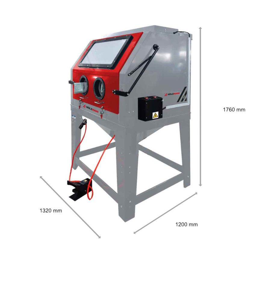 - La cabine sableuse 825L est la plus grande cabine de la gamme professionnelle. Elle est équipée d’un séparateur de poussière, la charge maximale sur la grille est de 100 kg.