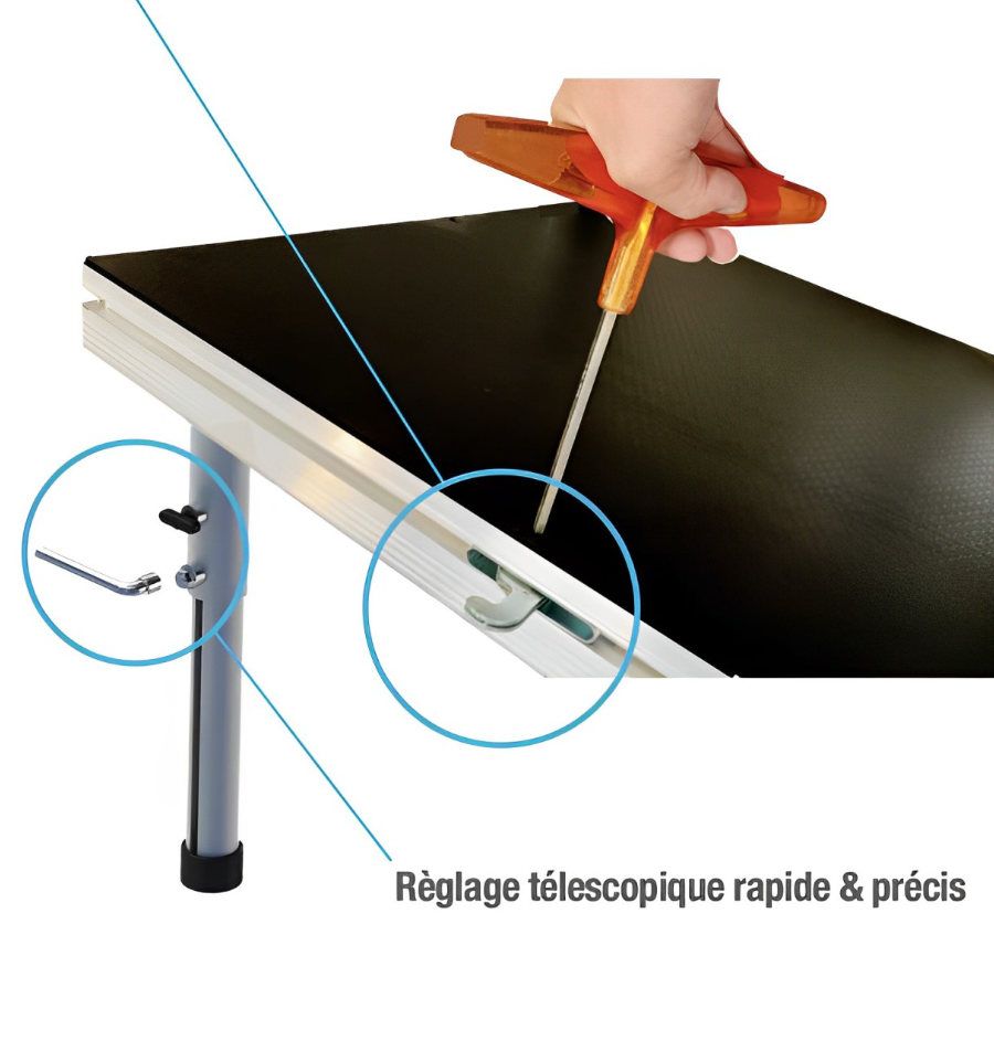 Ils sont équipés d'une poignée et d'un blocage de sécurité et un mètre pour mesurer est intégré dans les pieds.