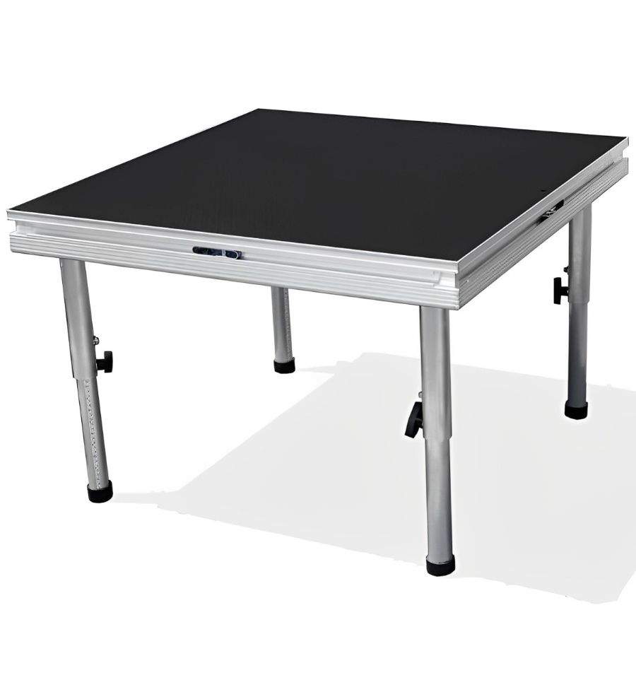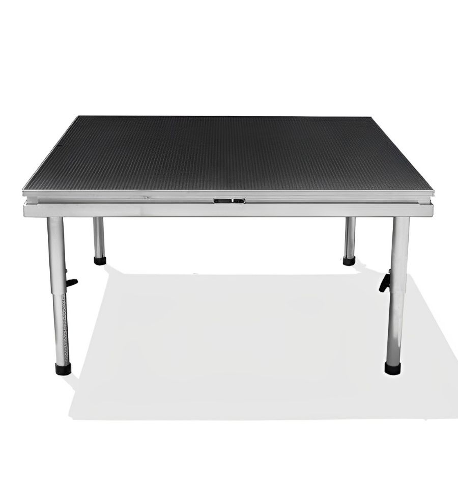 N'hésitez pas à jeter un coup d'œil à notre sélection de praticable de scène pas cher, comme notre praticable ciseaux 2 x 1 mètre disponible avec son garde-corps et son escalier.