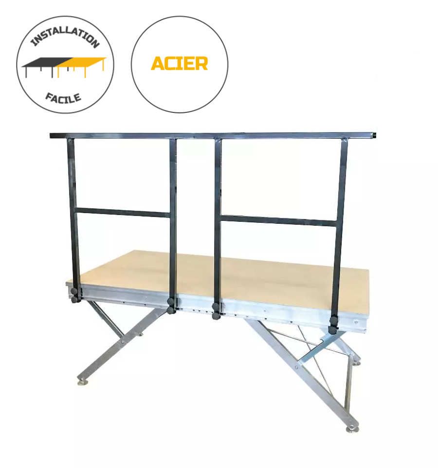Obligatoire sur une scène à partir de 1 mètre de hauteur, il est facile à monter.