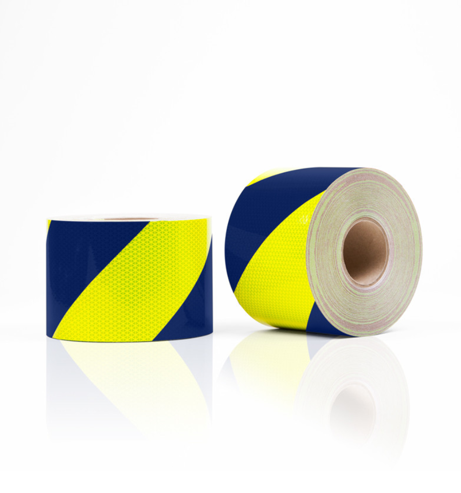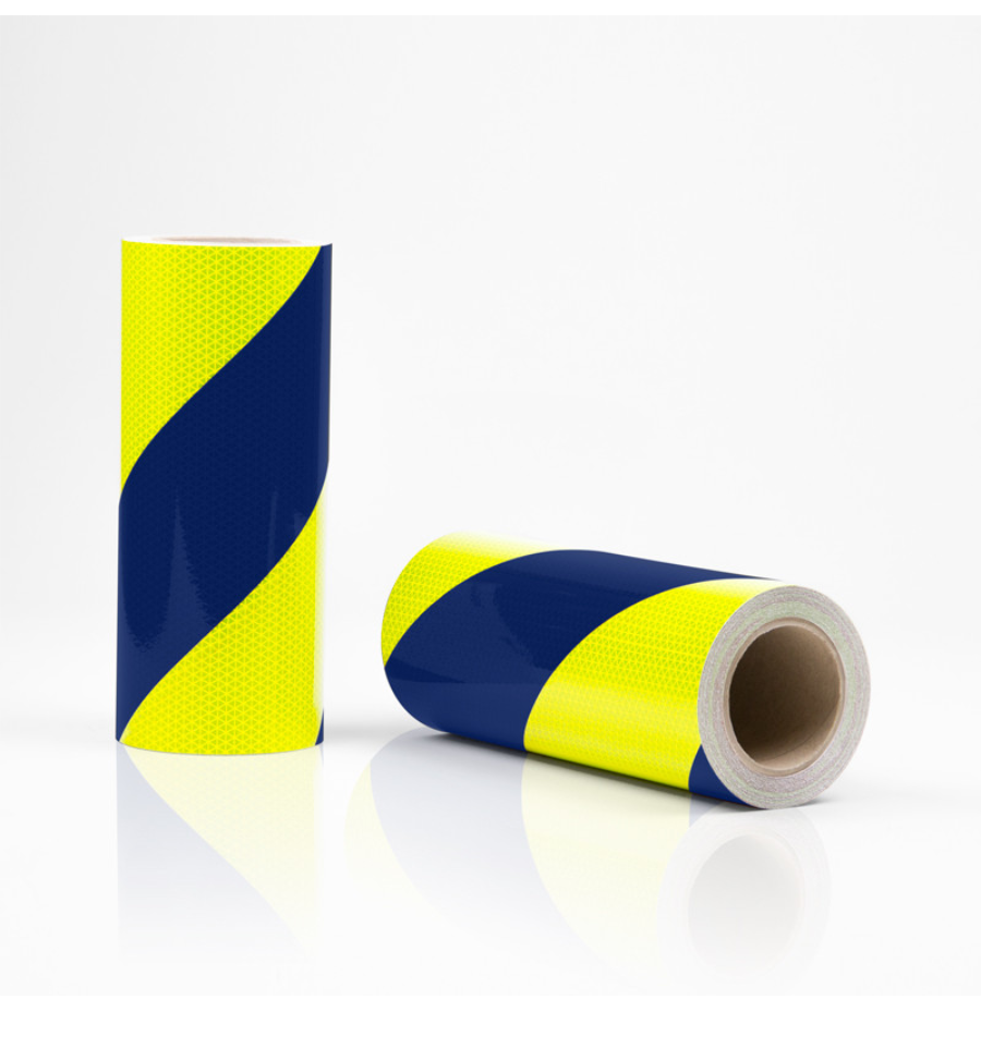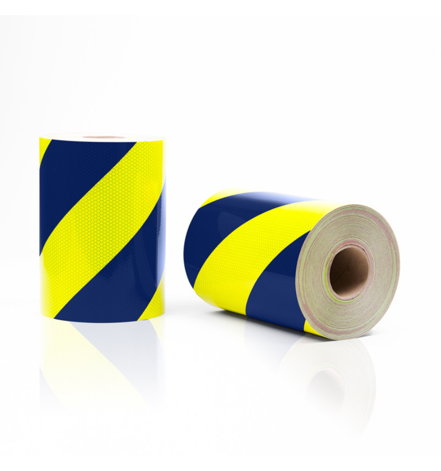 Les bandes réfléchissantes d'urgence sont proposées en 4 dimensions : 10 m x 14 cm, 10 m x 28 cm et 50 m x 14 cm, 50 m x 28 cm.