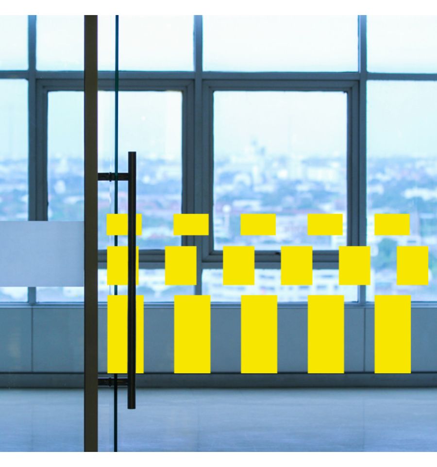 Rendez détectable vos parois vitrées grâce à notre signalétique pour surface vitrée composée de formes rectangulaires. Si le contraste visuel est bien réalisé avec le reste de l'espace, elle permet d'éviter les chocs avec la vitre et sécurise davantage vos locaux.