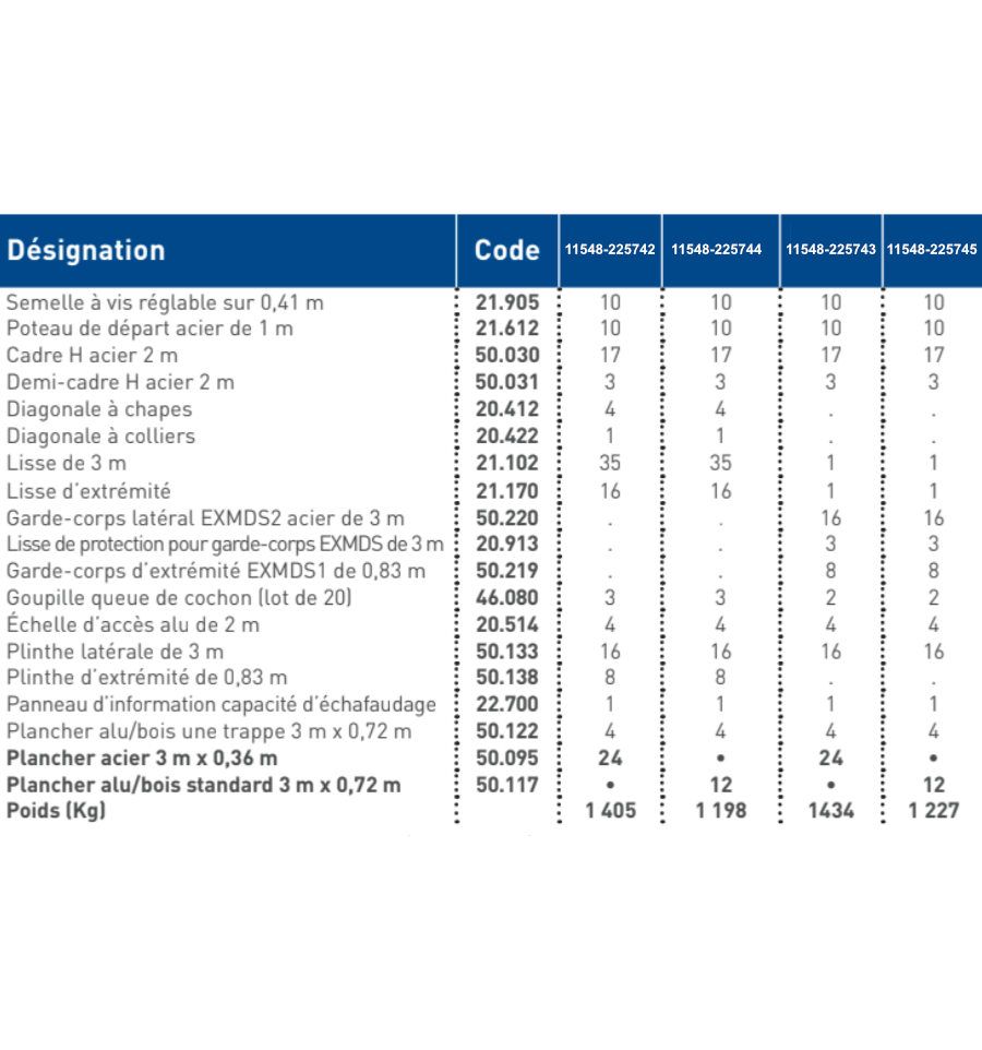 De plus, choisissez votre garde-corps, avec des lisses ou sécurisé. Enfin, les planchers de nos échafaudages sont disponibles en acier ou alu/bois.
