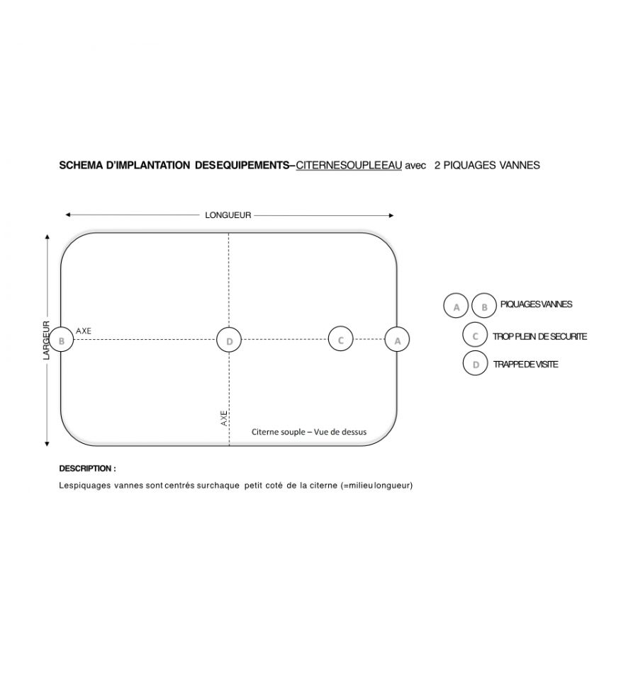 - Les piquages vannes sont centrés sur chaque grand côté de la citerne (longueur)
