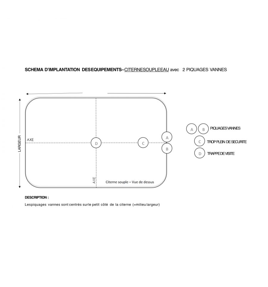 - Les piquages vannes sont centrés sur chaque petit côté de la citerne (largeur)