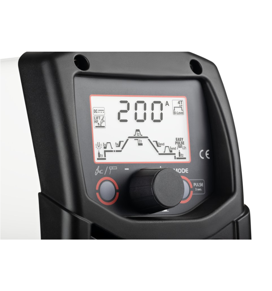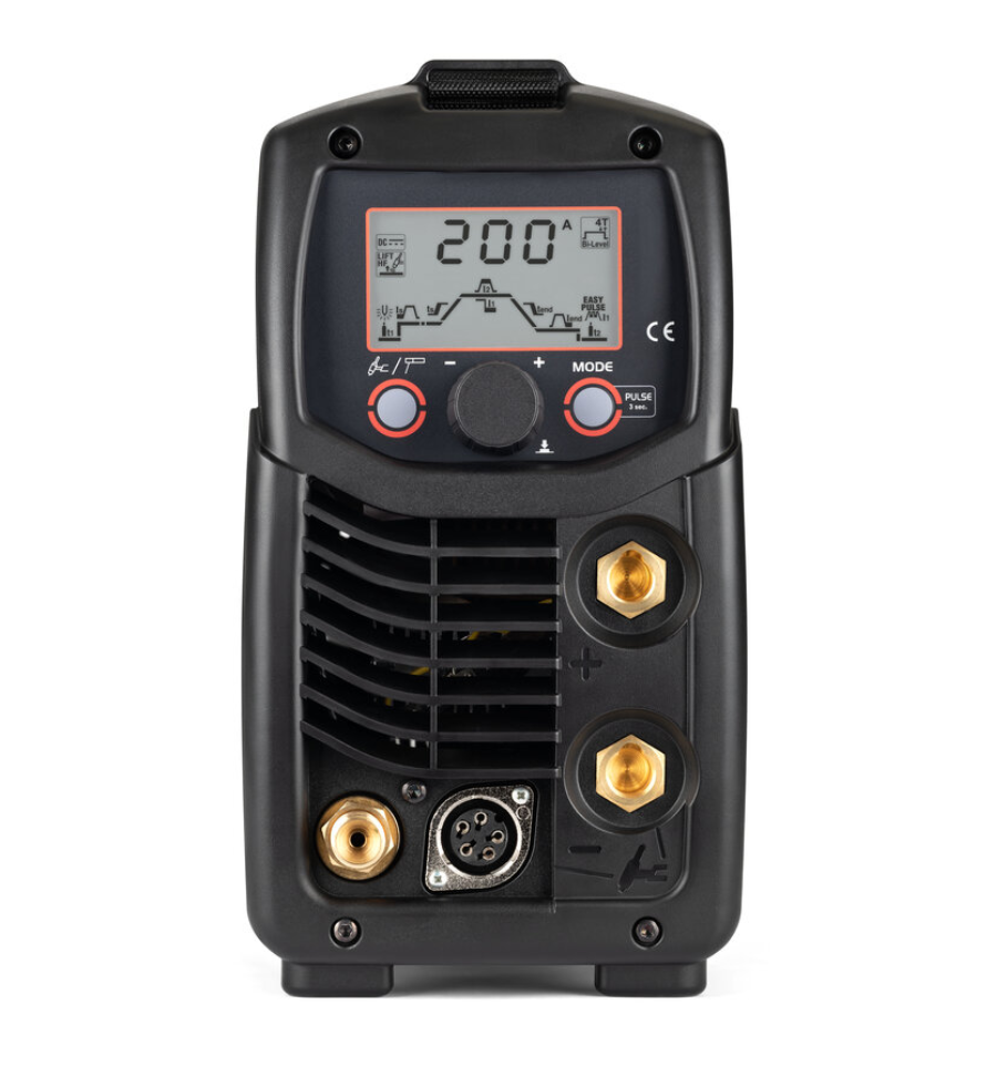 Notre troisième modèle est un poste à souder TIG professionnel inverter permettant des soudures TIG avec amorçage à haute fréquence HF ou LIFT, TIG pulsé-pulsé easy et des soudures MMA en courant continu (DC) à 200A.