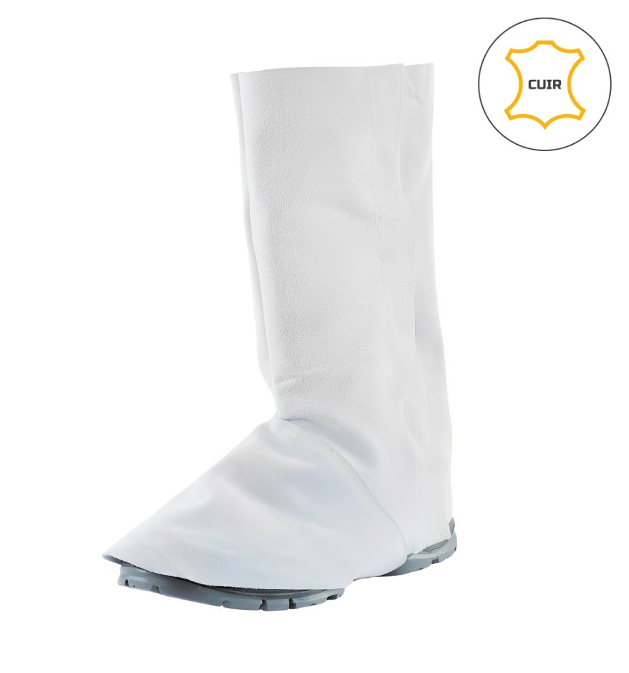 La paire de guêtre de soudeur est entièrement blanche.