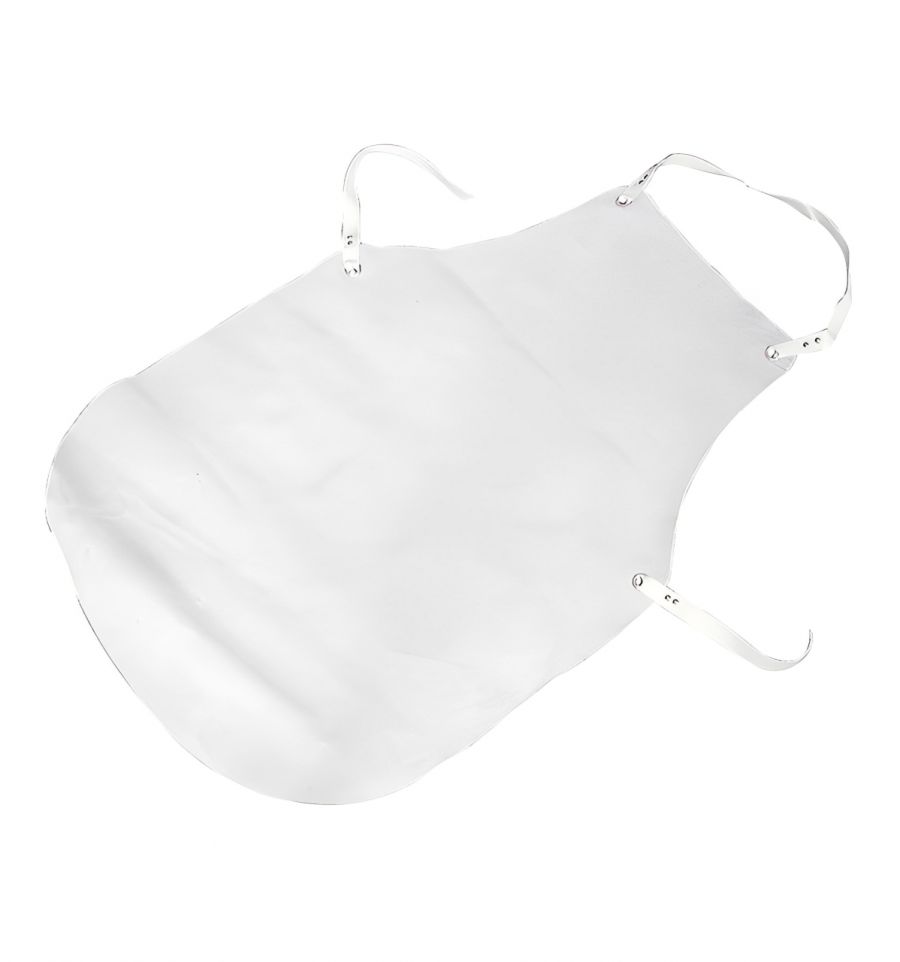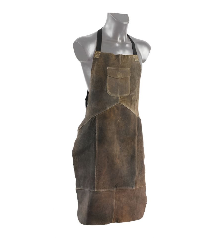 Le tablier est conçu entièrement en croûte de cuir blanche avec des attaches au cou et à l'arrière et mesure 600 x 900 mm.