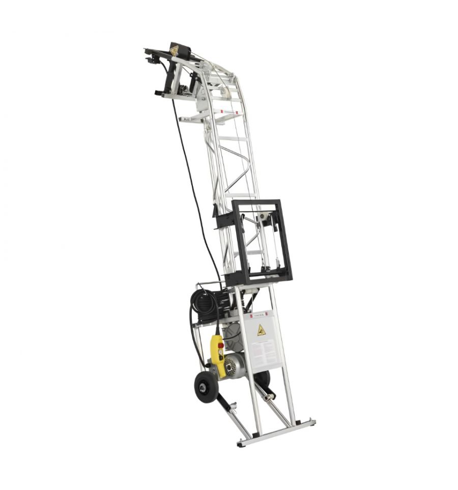 Ce monte matériaux assure un levage optimal des panneaux ou plaques grâce à sa capacité de charge optimisée (jusqu'à 200 kg) et à sa hauteur d'accès pouvant atteindre 40 mètres, réduisant ainsi les efforts physiques et les risques liés à la manutention en hauteur.