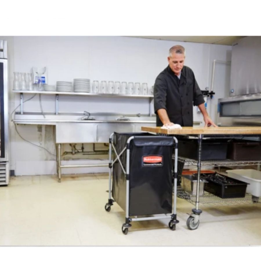 Le chariot à linge X-Cart pliable Rubbermaid a une capacité de charge de 100 kg.