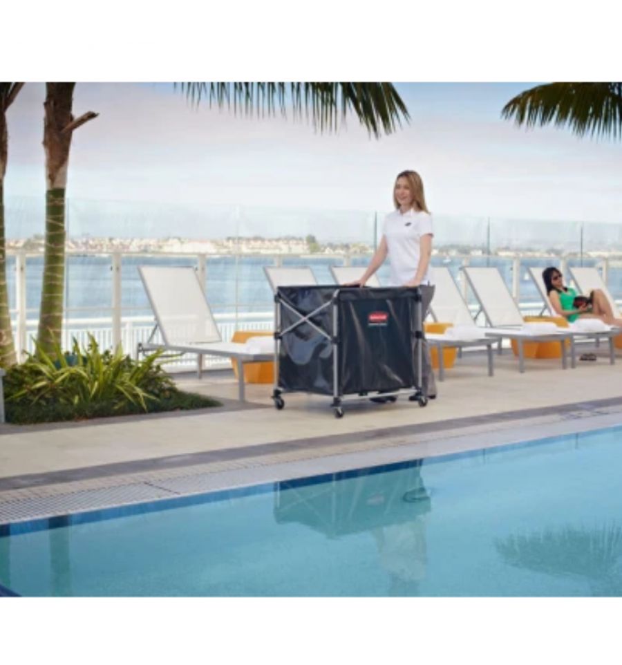 Le chariot à linge pliable est idéal pour récolter le linge sale de votre établissement, tout en offrant un espace de stockage peu encombrant.