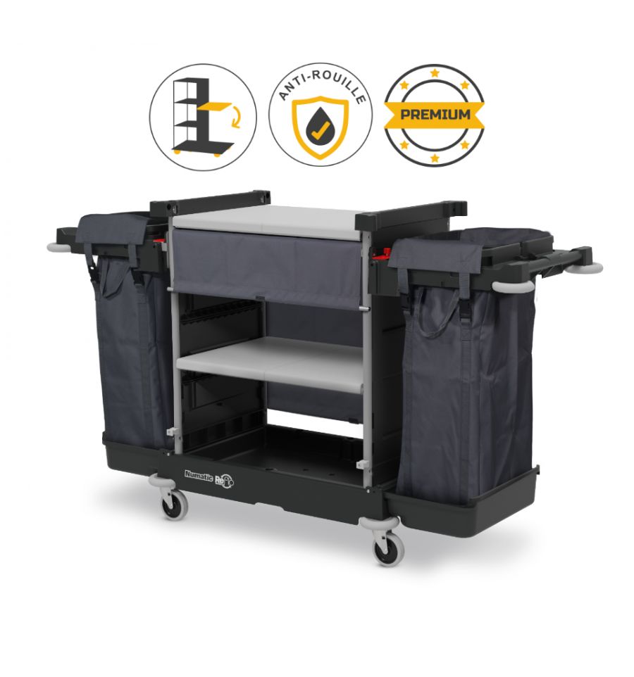 Découvrez notre chariot hotelier Numatic conçu pour la distribution du linge et la récolte du linge sale en chambre.
