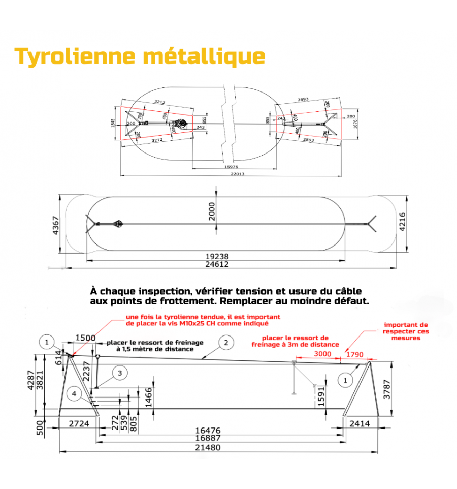 Données techniques de notre téléphérique métallique pour aire de jeux