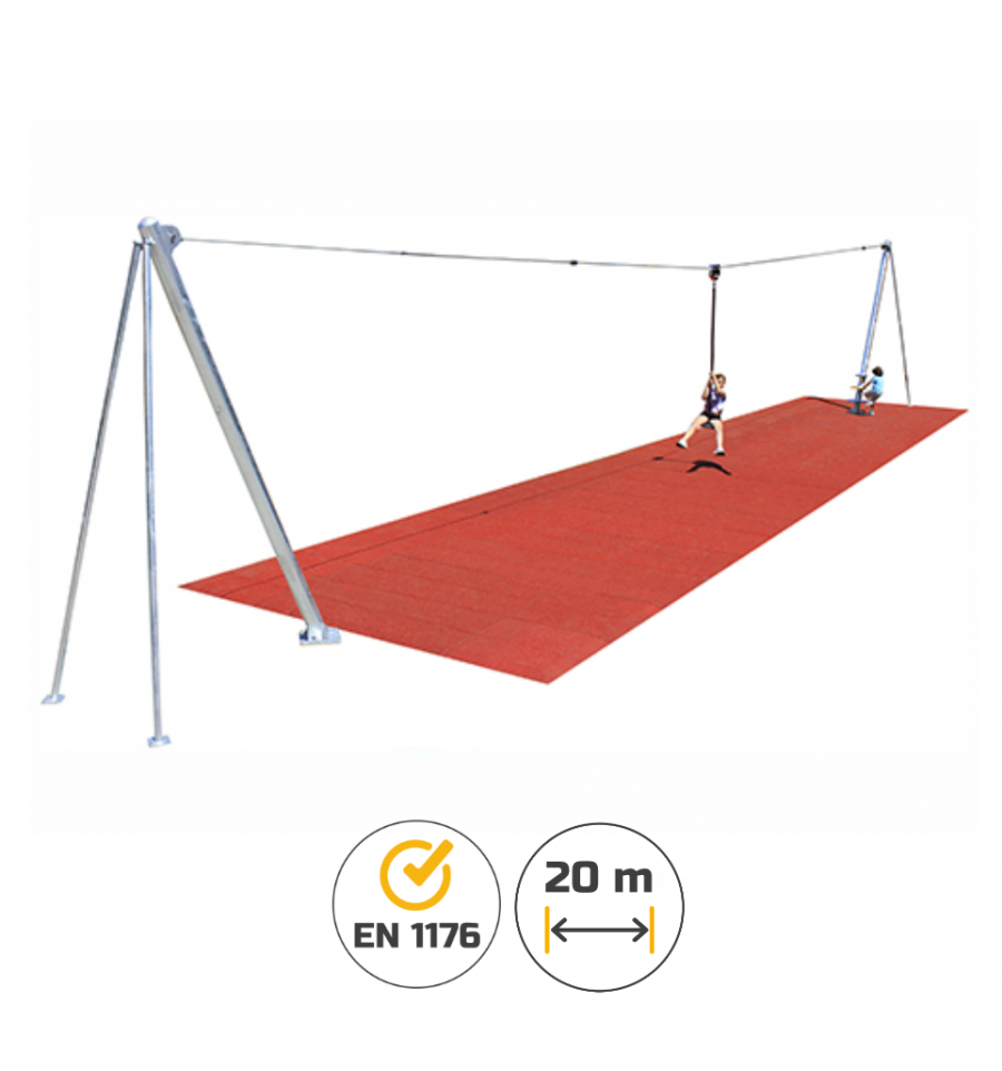 Notre tyrolienne métallique 20m est idéale pour une structure de jeux pour enfants, à un très bon rapport qualité-prix.